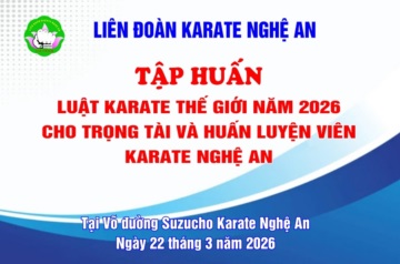 Khóa tập huấn Luật thi đấu Karate mới năm 2026 do Liên đoàn Karate tỉnh Nghệ An tổ chức. Sự kiện diễn ra từ ngày 21-22/03/2026 tại Nghệ An, nhằm cập nhật luật thi đấu mới nhất của ...
