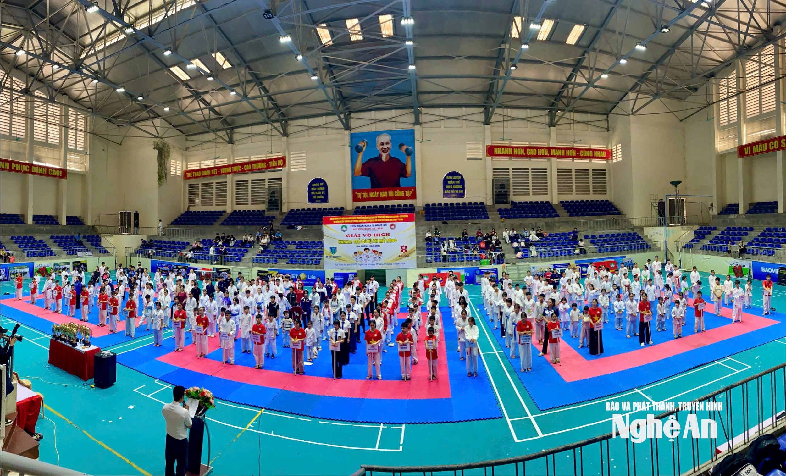 - Khai mạc và thi đấu: tại Nhà thi đấu thể thao – Trung tâm TDTT Nghệ An, Số 06 đường Đào Tấn, TP Vinh, tỉnh Nghệ An.